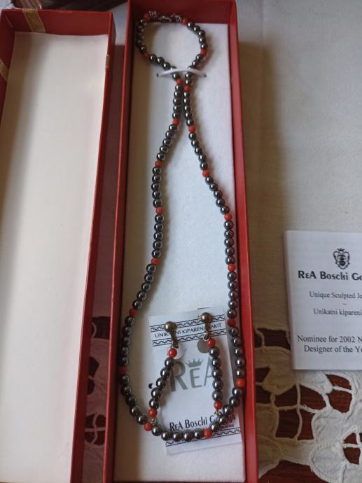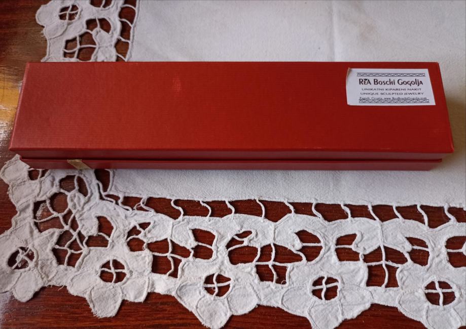 Povoljno prodajem set odnosno navedeni ručno rađeni kipareni nakit koji se sastoji od ogrlice i naušnica.