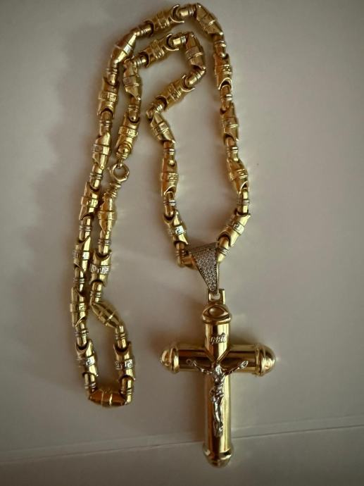 VERSACE ZLATNI LANAC + PRIVJESAK KRIŽ 14 karatno 45,89 grama
