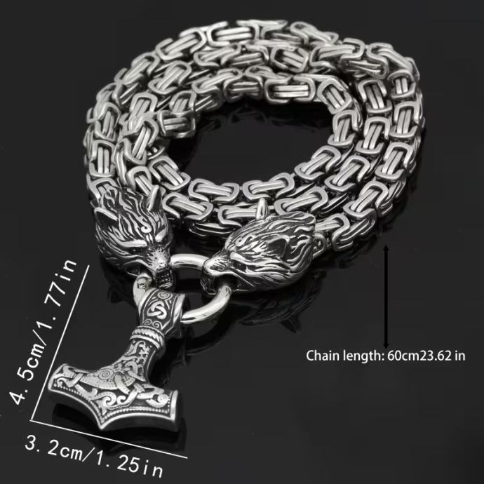 Privjesak od nehrđajućeg čelika, vučja glava, vikinška vintage ogrlica s amuletom