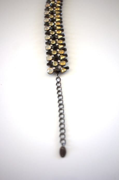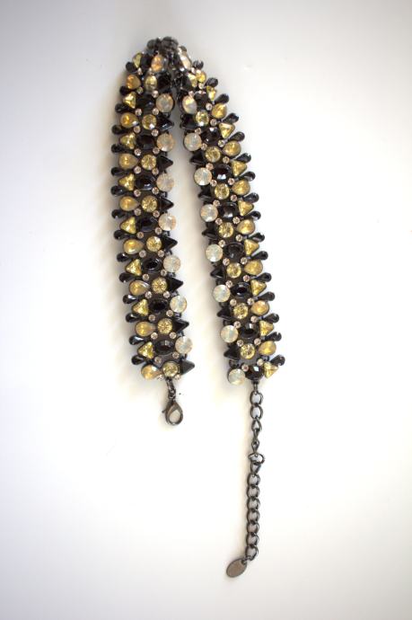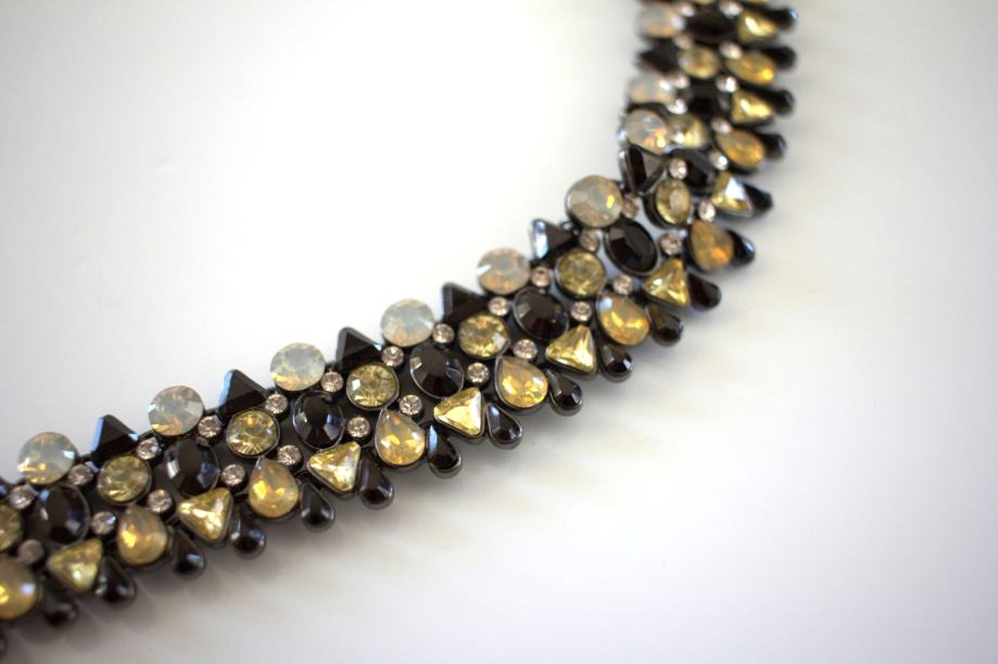 Predivna ogrlica iz Zare s ukrasnim kamenčićima crne prozirne, bijele i žute boje (kao na slici) podesive duljine,
