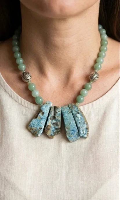 Povoljno prodajem novu predivnu ručno rađenu zeleno-tirkiznu ogrlicu sa ukrašenim kamenjem.