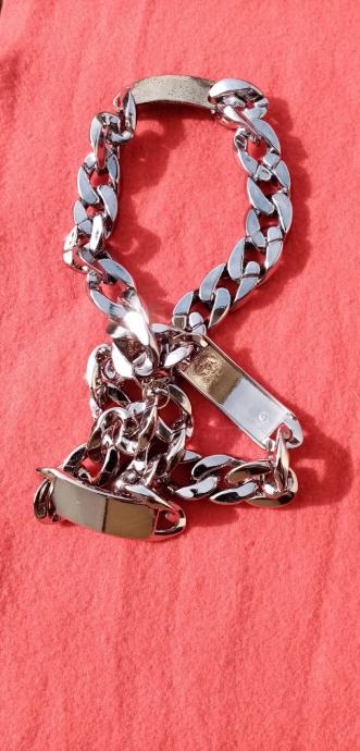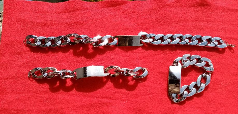 Metalna oglica+2 narukvice, može raspar: ogrlica 9e, narukvice po 5e. Naslovna cijena je ukupna.