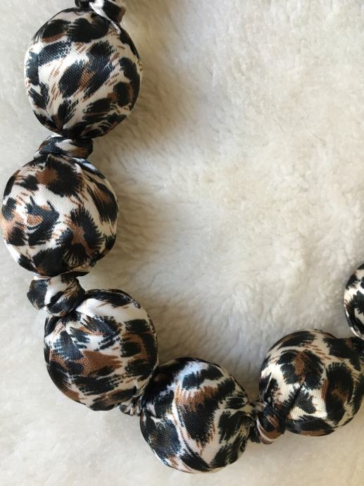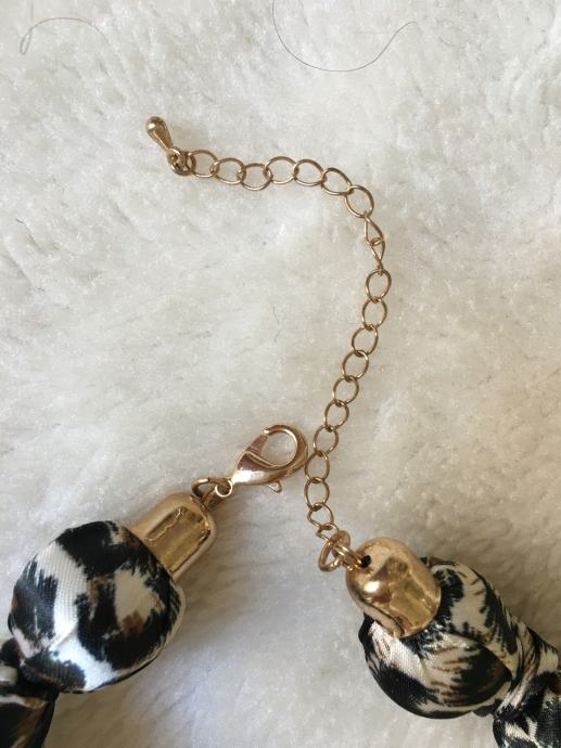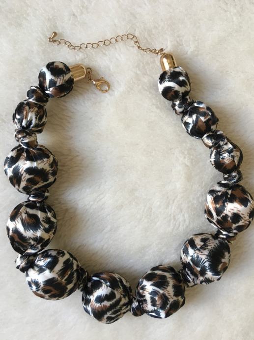 Prodajem novu žensku ogrlicu tigrastog uzorka. Ukupna dužina je 50cm, a kopča s lančićem od 10cm je podesiva po mjeri.