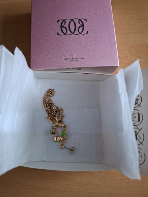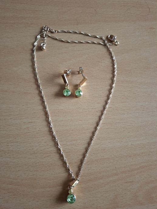 Prodajem lancic i nausnice sa zelenim kamencicem.Idealan poklon.