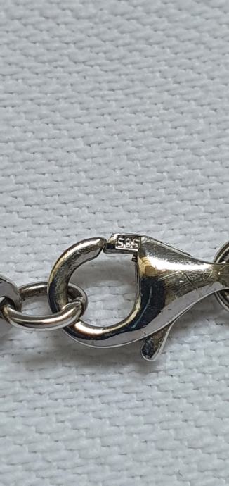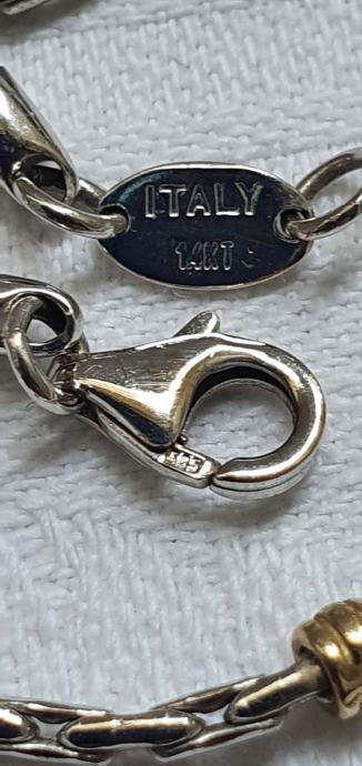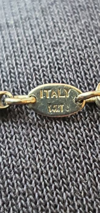 Kopča je označena sa žigom 585 a na fiknoj pločici sa 14KT Italy i zaštitnim znakom s druge strane pločice sve alkice su fixne