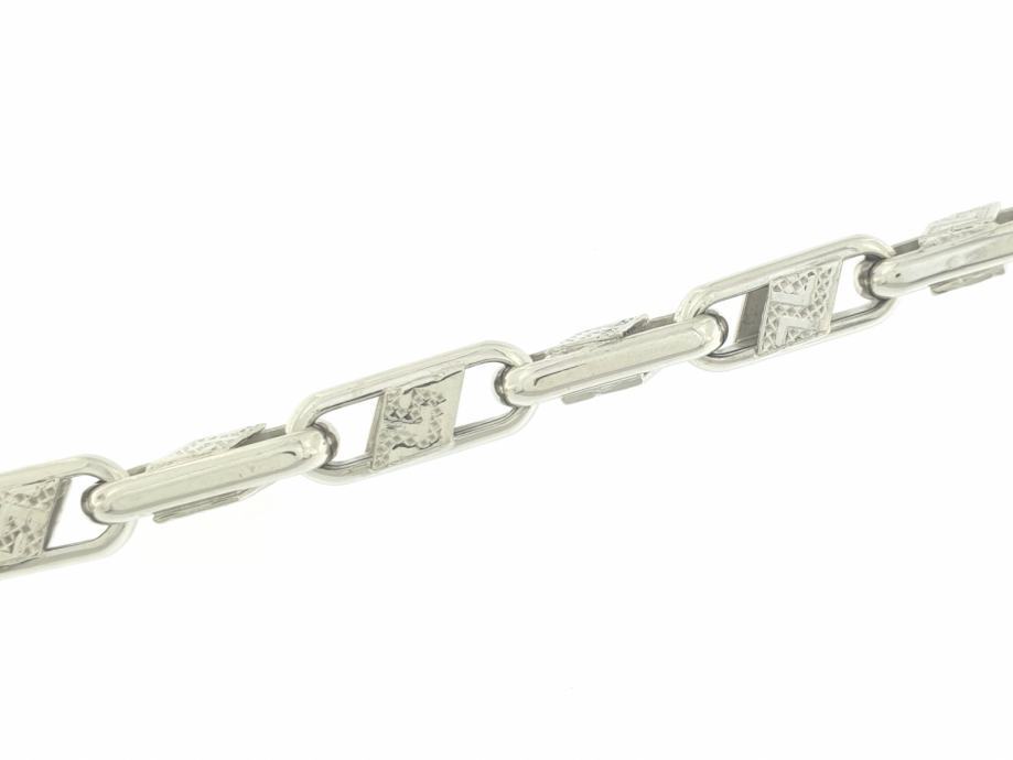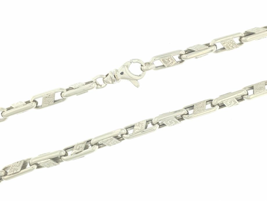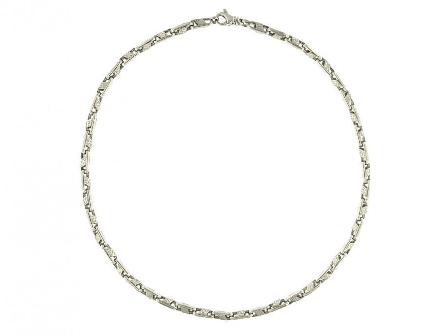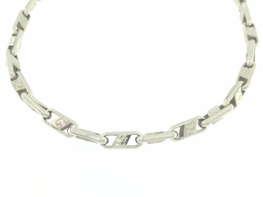 Zlatna ogrlica, bijelo zlato 14K, žig 585, karike dupli kare vez, masivnije, šuplje.