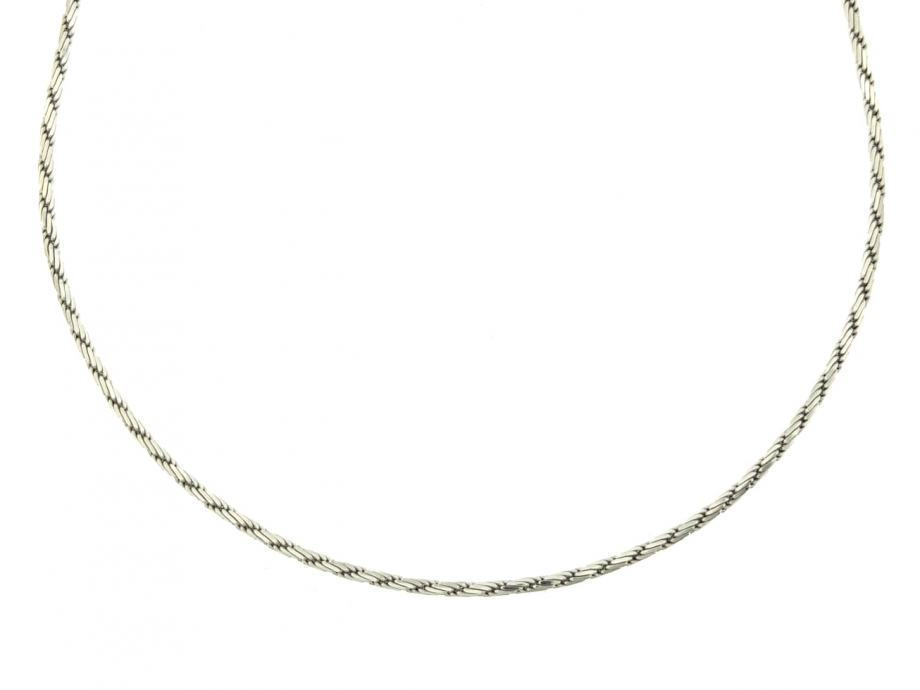 Zlatna ogrlica, ženska, bijelo zlato 14K, žig 585, sajlica, guste zbijene karikice.