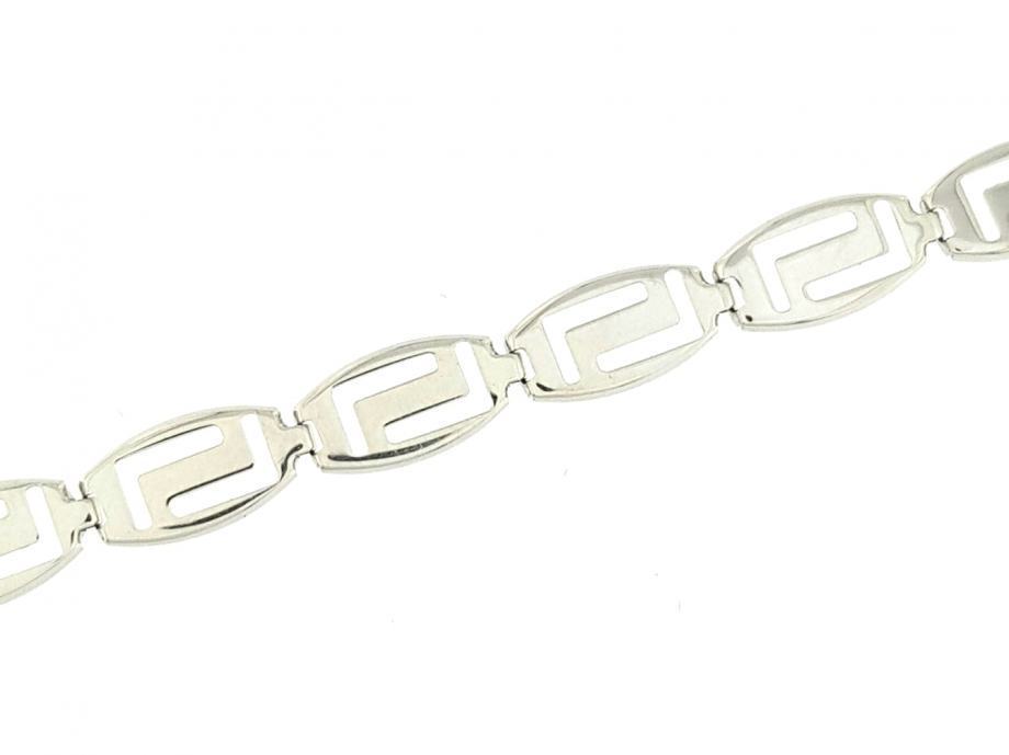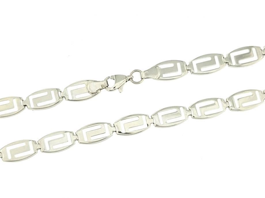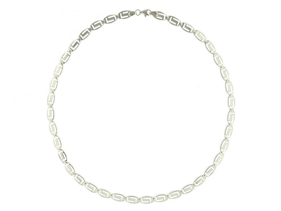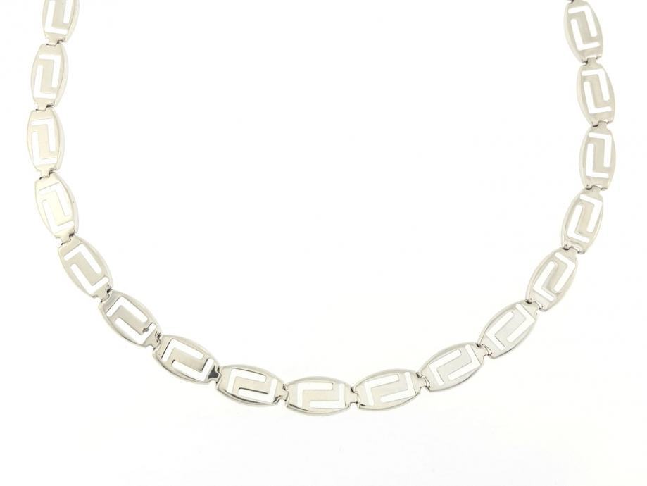 Zlatna ogrlica, ženska, bijelo zlato 14K, žig 585, tanki segmenti, glat. U ponudi imamo i odgovarajuću narukvicu.