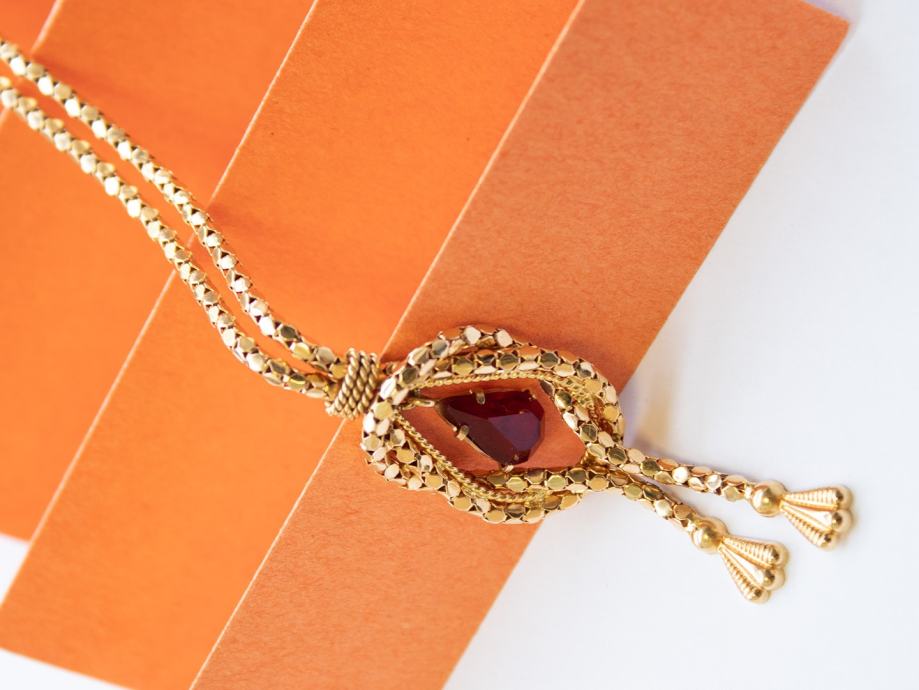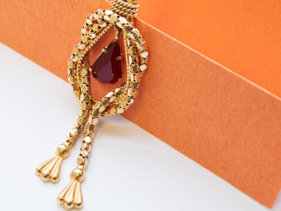 ZLATNA OGRLICA S CRVENIM CIRKONOM 18K (750) 14,80g NOVO • GOLD SHOP •