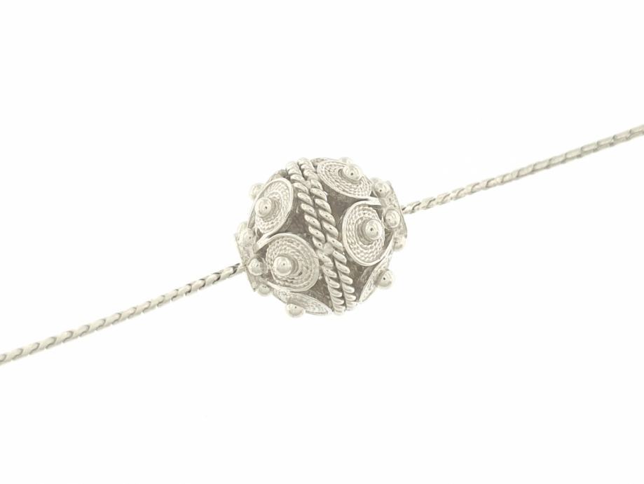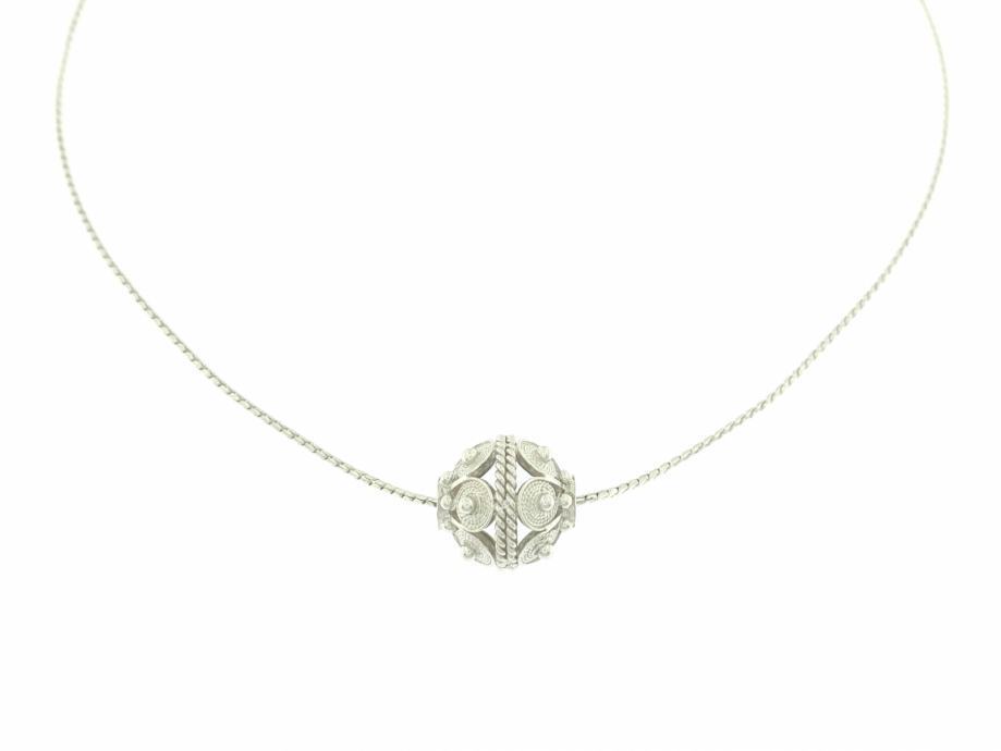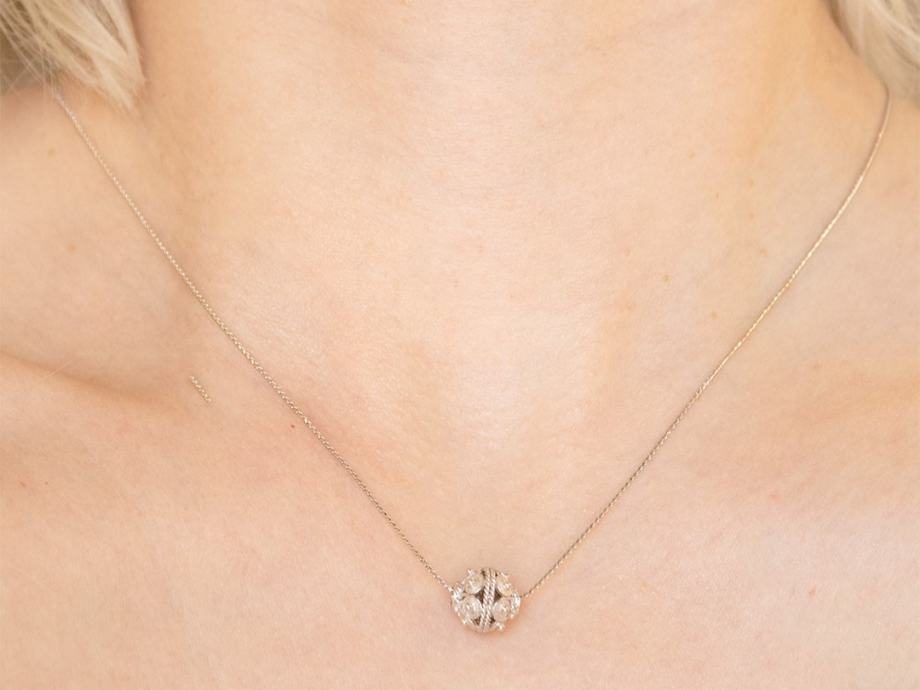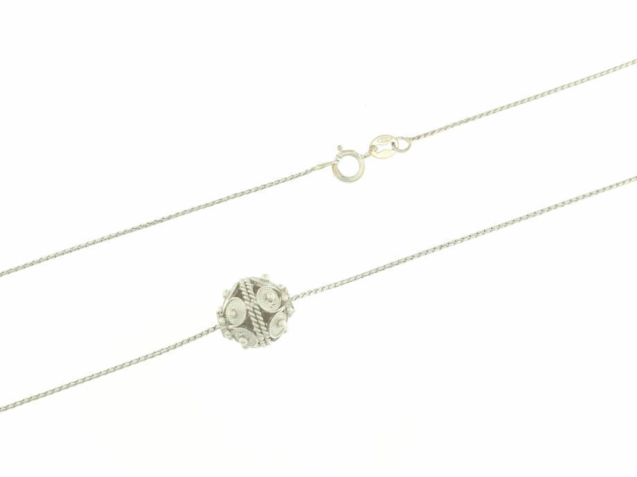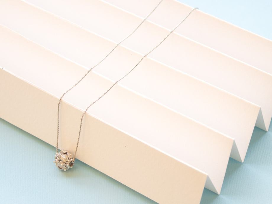 Zlatna ogrlica, bijelo zlato 14K, žig 585, mat sajlica, fiksni klizeći privjesak - šibenski botun promjera 12mm.