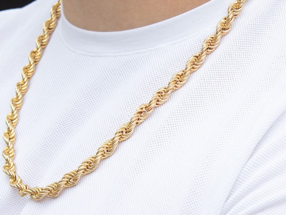 Zlatni lanac, masivan, šuplji valis vez, žuto zlato 14K, žig 585.