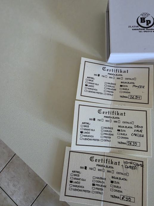 Sve NOVO IZ ZLATARNE sa papirima certifikatima
