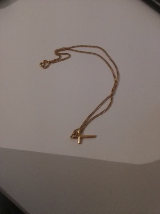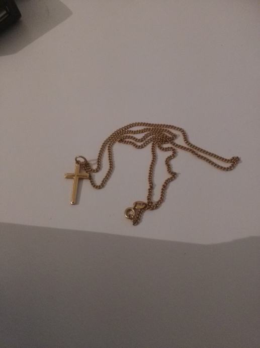 Prodajem zlatni lančić s križem. U odličnom stanju. Duljina lančića je 40 centimetara.