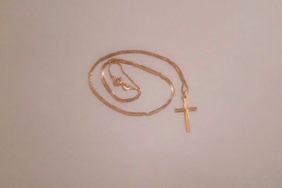 ZLATNI LANČIĆ S KRIŽIĆEM - muški, ~53 cm, 14K, nenošen, celje, kao NOV