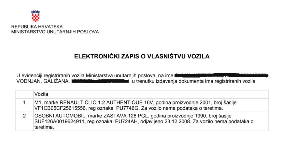 Auto se nalazi u Galižani.