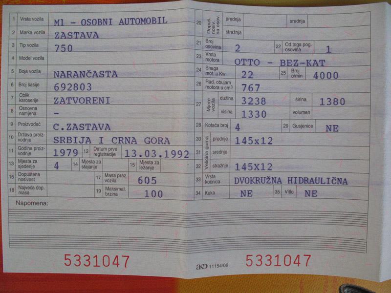 Fićo u izvrsnom stanju, garažiran od prvog dana. Prvi vlasnik. Godina proizvodnje 1979. Dokumenti uredni. Navedeni automobil i njegov prodavatelj se nalaze u Koprivnici. Automobil je registriran do 12. mjeseca 2012. godine.