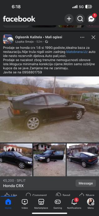 Prodaje se honda crx,1.6 SI 96kW /131 ks ,1990.god