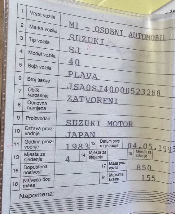Suzuki SJ40, 1983g., 33 KW, obnovljen