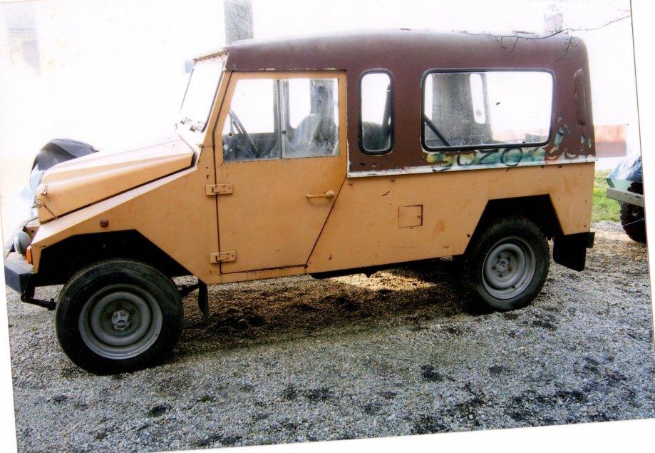 Terenac francuske proizvodnje za vojne potrebe, dvosjed sa tvrdim krovom, rollbarom, motor, diesel 2300 ccm, 55 kw (peugeot 505 ili granada). Bio je registriran i odjavljen, posjedujem HR papire.. Novije modele možete vidjeti po Bosni gdje ih je vozio Unprofor. Limarija od milimetarskog lima. Donji postroj vozila je Warnov - USA-prodajem ili mijenjam za manji automobil. Vozilo pali i vozi. Ugrađena nova vodena pumpa. Uz njega idu 4 MICHELIN gume kramponke u odličnom stanju.