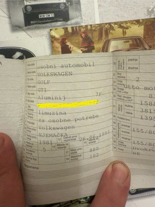 Golf gti mk1. Papiri uredni hrvatski, original gti.