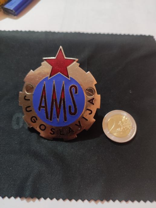 Oznaka Auto moto saveza Jugoslavije u dobrom stanju . Vijak je mesing a oznaka inox ili isto mesing
