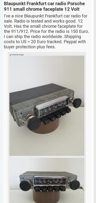Autoradio "BLAUPUNKT" FRANKFURT za oldtimer...PORSCHE 911..912...1974- godina..chrom prednja maska...