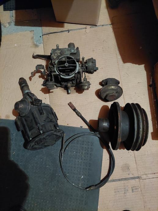 Zatim imam neke lajsne,ventilator, prekidače, mehanizam mjenjača,volan , unutarnje ogledalo itd.Za v6 frtajler 80eur. alternator 80eur. remenica 30eur. karburator 100eur.( v6 motor)
