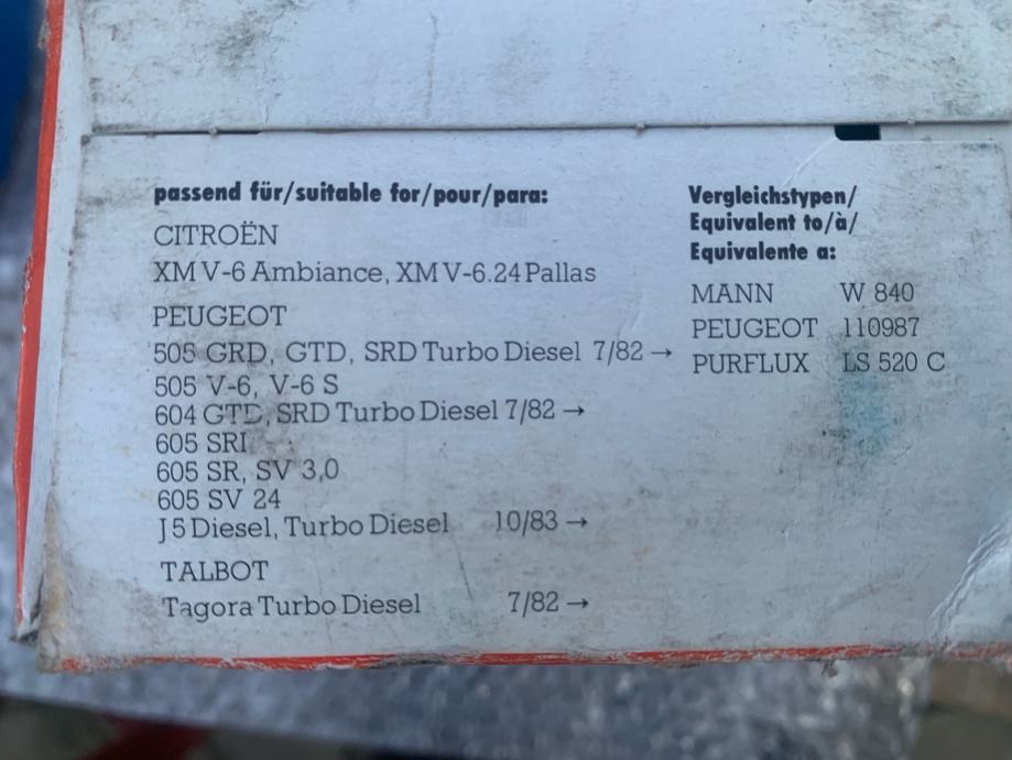 Citroen XM V-6 , filter ulja, novo, orginal. Odgovara za Peugeot, Talbot. Osobno preuzimanje, šaljemo poštom.