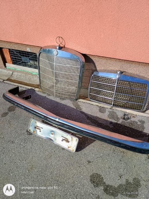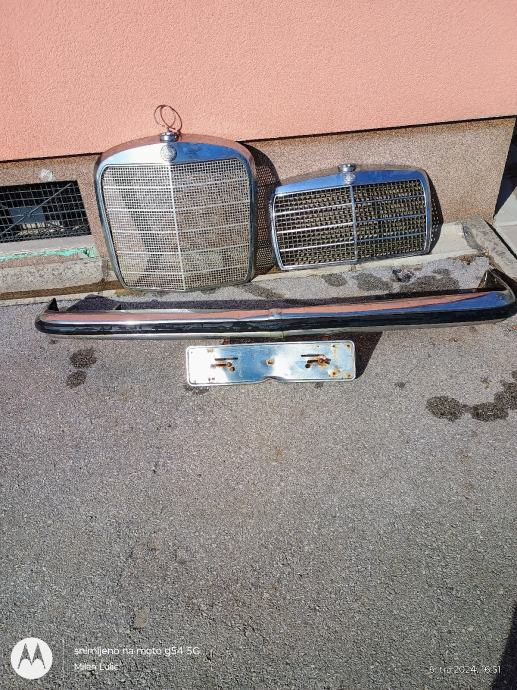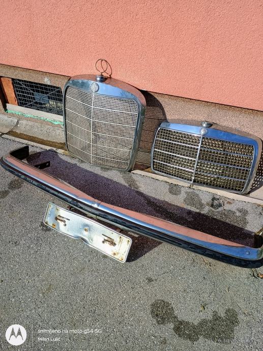 Prodajem puno dijelova za Oldtimere,većinom Mercedes w-114,w-115,w-116w-123.Maska veća 150e,maska manja 100e,branik w-115 250e...