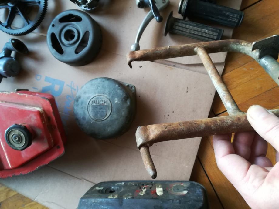 Dijelovi za moped Puch pony express. Cijene pojedinačno opis: filter za zrak PRODANO. Nogari 26eura. Okrugli poklopac sa logom Puch 10eura. Set ručki sa prihvatima, dobro je očuvan, prodajem samo kao set, 80eura. Rezervoar spremnik za gorivo, ima rupicu( pokazujem na fotki) 50eura. Fergazer tj rasplinjač Bing je PRODAN. Magnet i struja u jako dobrom stanju, prodajem samo kao set, 90eura. Glava cilindra, očuvana, nema dekompresor, 26eura. Zamašnjak PRODANO. Crveni bočni limovi PRODANO. Puch ponny pony poni ekspres express expres maxi e50. Na sms nemogu odgovoriti, najbolje bi bilo da me nazovete 099 687 5657 ili pošaljete poruku preko Njuškala.
