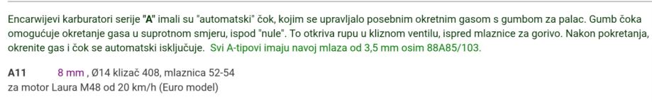 Prodajem karburator A11 Encarwi za moped Tomos, original anker Laura motor M48, NL (tzv. remenaš), u originalnom stanju (kompletan).