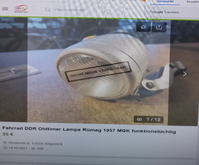 vintage lampa za oldtimer bicikl "RUMAG" MGK..DDR--1957. godina...stanje kao na fotografijama.