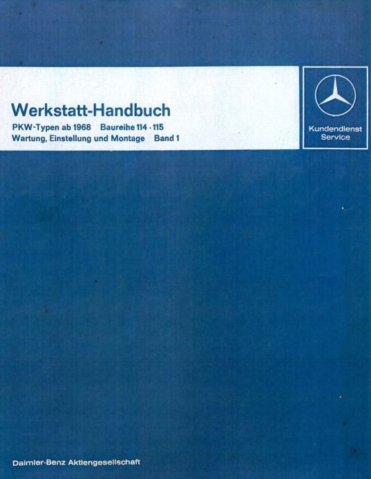 Prodajem tvornički servisni priručnik za Mercedes Benz W114/115 za benzinske modele 200/8, 220/8, 230/8, 250/8 i dizelaše 200 D/8, 220 D/8. Servisni priručnik obuhvaća na gotovo 800 stranica sve radove na mehanici, elektrika, puno fotografija, crteža, presjeka, detaljnih tehničkih podataka i opisa... Priručnik je na njemačkom jeziku, isporuka na CD-u pdf format.