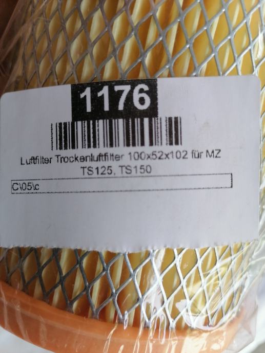Prodajem novi filter zraka za mz es ts 125 150 . Dimanzije filtera su 100 x 52 x 102.
