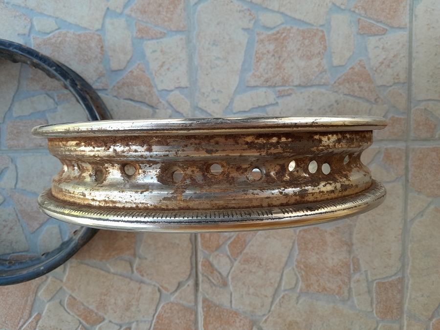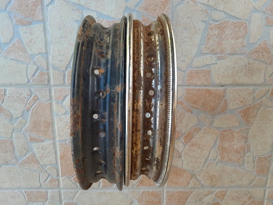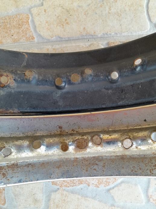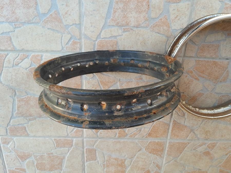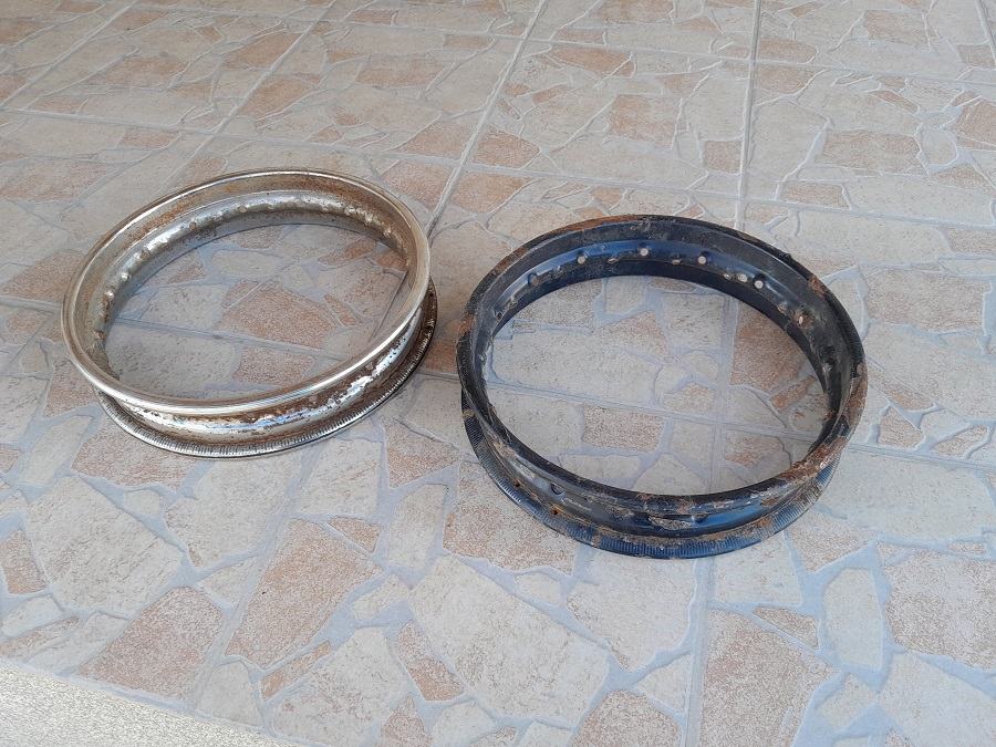 Prodajem obruče za felge za stari skuter,stanje kao na slici,jedna je kromirana druga je obojana i malo lakša od prve,dimenzije vidljive na slici,32 rupe,šaljem pouzećem na trošak kupca,cijena je za obadvije