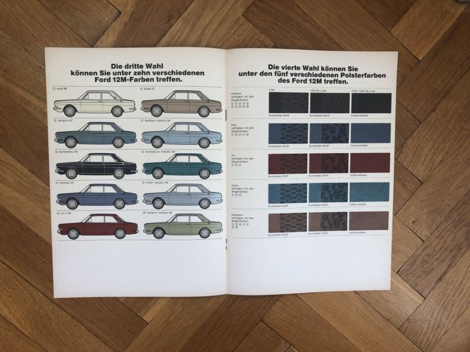 - Eine erste Wahl unter den verbesserten Ford 12M: detaljan opis paketa opreme (STD, Luxe, posebna oprema), boje, tapecirung, dodatna oprema, tehnički podaci.