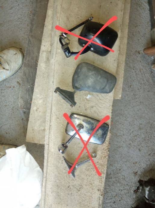 Zglobovi za namještanje ispravni, ogledalo cijelo, guma oko ogledala cijela.