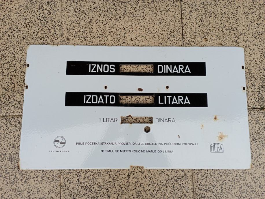 Stara emajlirana tabla sa benzinske pumpe. Dimenzije cca 50x70cm, u originalnom stanju. Ne šaljem poštom, samo osobno preuzimanje u Samoboru