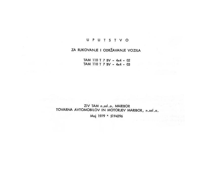 Prodajem slijedeću servisnu literaturu za TAM 110 T7 BV 4X4, sve u pdf formatu visoke rezolucije na CD-u, moguće printati po želji i potrebi, puno ilustracija, crteža, detaljnih opisa, izvadci iz kataloga dijelova...