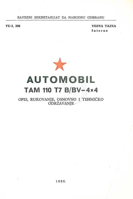 TAM 110 T7B BV-4x4 - Opis, Rukovanje,Osnovno i tehničko održavanje JNA, 392 strane, hrvatski jezik