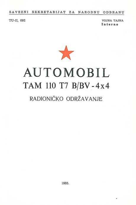 TAM 110 T7B BV-4x4 - Radioničko održavanje JNA, 387 strana, hrvatski jezik