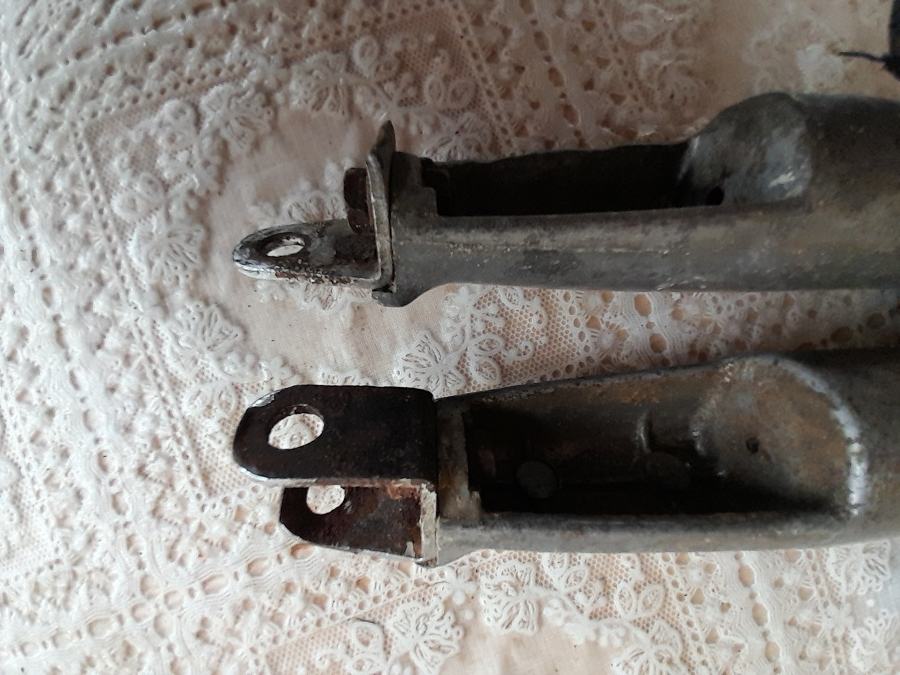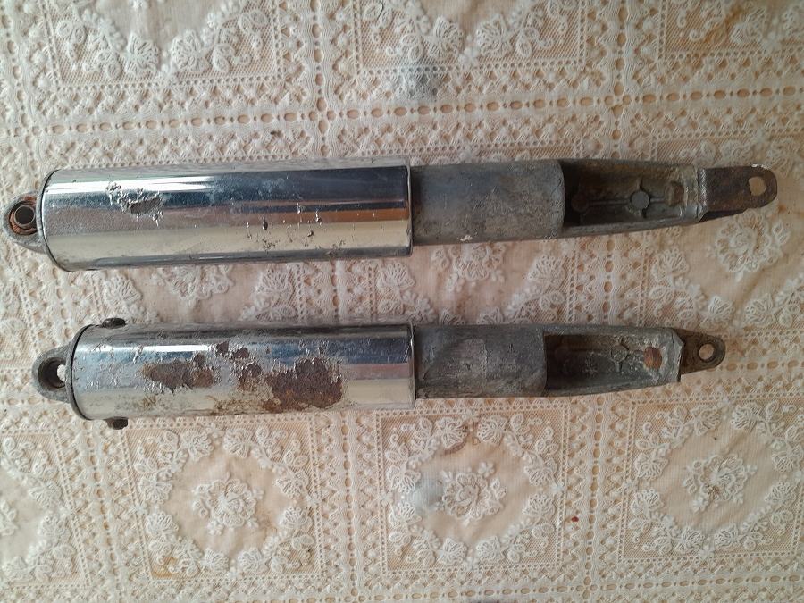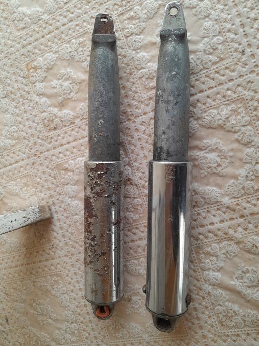 Prodajem zadnje amortizere za Tomos T-12,stanje kao na slici,na jednom je polomit donji dio koji se ušarafi i kroz koji ide vijak koji povezuje amortizer sa zadnjom vilicom (samim time se može napraviti),vidljivo na slici,šaljem pouzećem na račun kupca,za obadva 15 eura