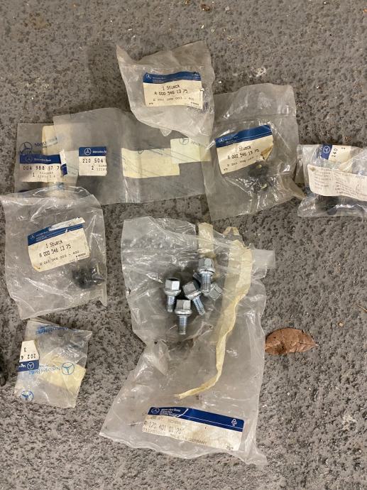 Vijci, Šarafi dugi 19 komada i kratki 5 komada, i ostali originalni dijelovi sa slika( držač i sl)original Mercedes, za okaša (97-98 god). Sve skupa prodajem u kompletu sa slika 20 eura.