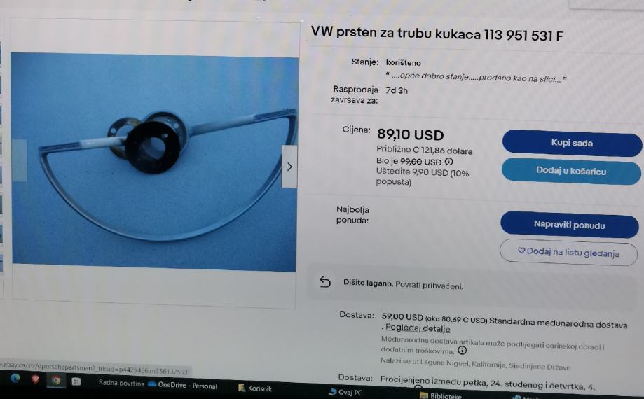 VOLAN SA KROMIRANIM PRSTENOM VW 113 951 531 F ZA OLDTIMER BUBU 1962.