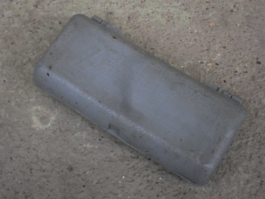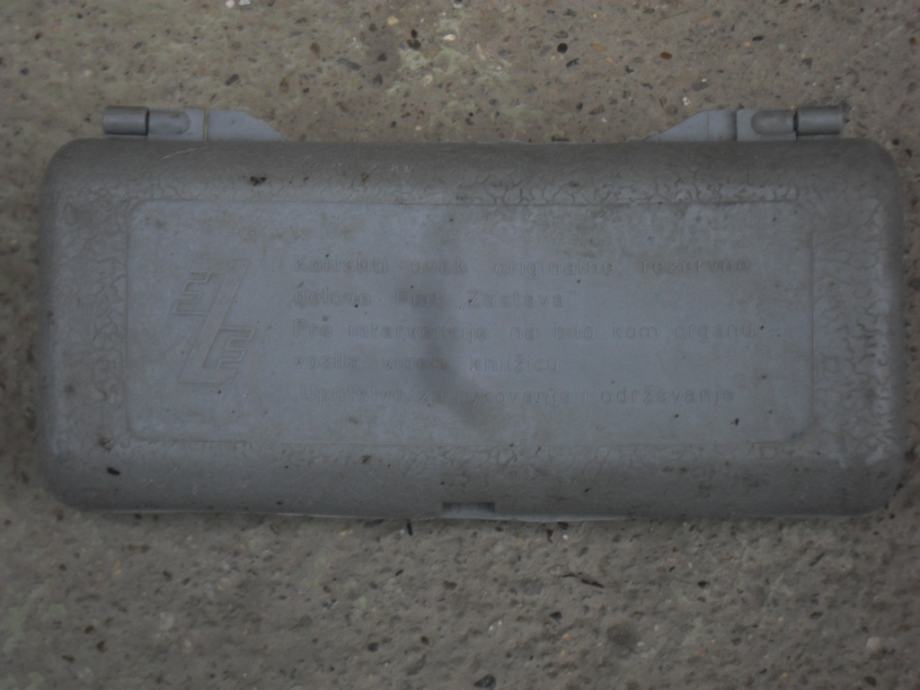 Odlično očuvana i isto tako funkcionalna Kutija Alata ZASTAVA Fiat OldTajmer Auto. Kutija je fizički odlično očuvana, bez ikakvih oštećenja sa minimalnim tragovima zuba vremena, estetske prirode. Na poklopcu kutije pored utisnutog teksta preporuke, autentičan stari logo 1953-1970 Zastava Kragujevac.