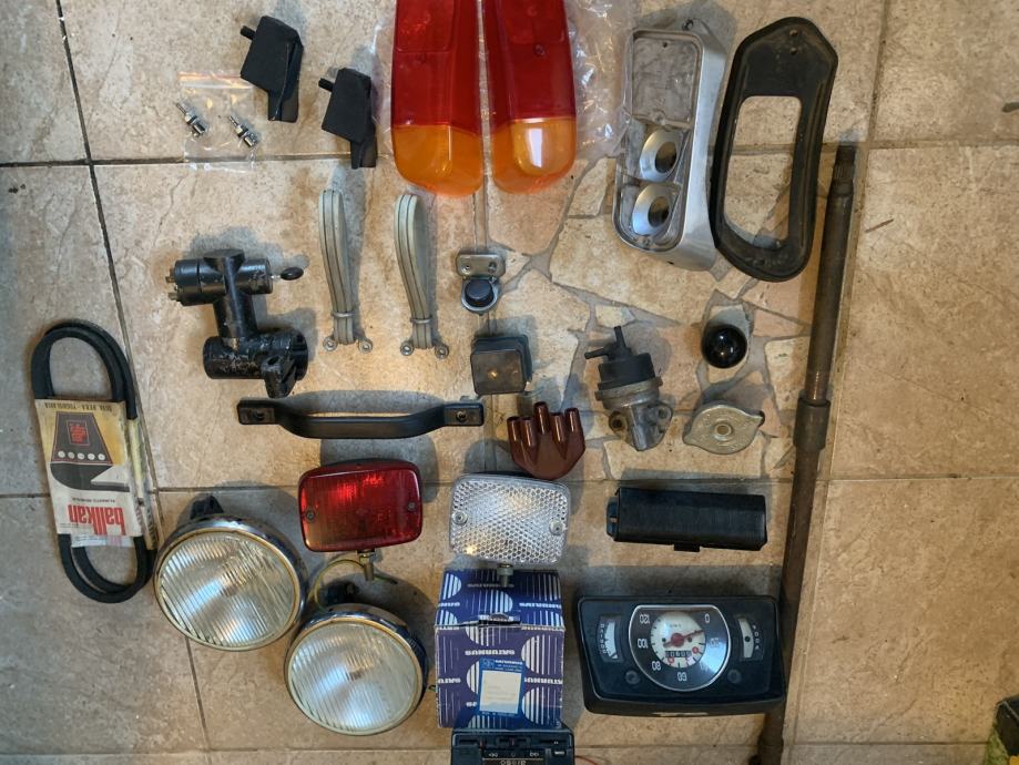 crijeva vode, čep ulja, čep vode, sajla km/h, sajla gasa, sajla ručne, mandžetna velika,mala,prirubnica,vijci prirubnice,osigurač,opruga,remen alternatora,kablovi svječica,svječice,lim auspuha i azbest,prednji i zadnji kočioni cilindar,pakne,glavni kočioni cilindar,kočiona crijeva prednja zadnja,matice kočioni crijeva,nosač branika,šrafi nosača branika,gumena podloška nosača branika,stakla prednji žmigavaca žuta i bijela,podloška žmigavaca,fiter zraka,filter ulja,termostat,retrovizori vanjski crni i kromirani,kromirana lajsna krova, lamac i lančanik, pumpa goriva,fiber pumpe,nosač motora,lampice set 4 boje,doboši, kondezatori, volan novi orginal sa tasterom,diftung glave, i dr.