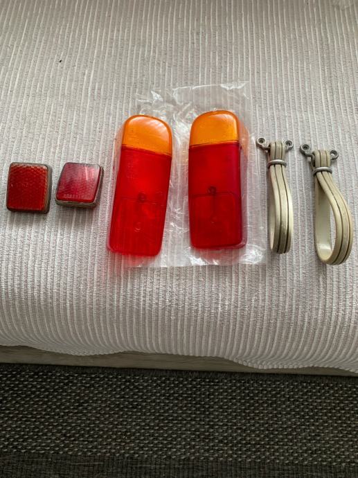 Gume-kederi prozora prednje,zadnje,bočno isto i za vrata NOVO,kočioni sistem kompletan,svijetla,žmigavci,rubnjaci, kutija osigurača,kontakt brava komplet ključ+uložak,dizalica,svječice,kablovi.