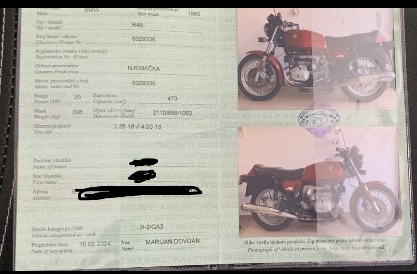 BMW r45 sa Oldtimer certifikatom i registracijom,sa cca 23500 originalnih kilometara i svim sitnicama od prvog dana(alat,pumpa,prva pomoć,knjige)