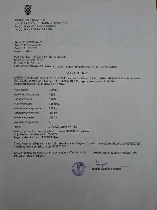Nova baterija, nova svjećica, čist karburator, čisti filteri, novo motorno ulje, nove stražnje kočione pločice.