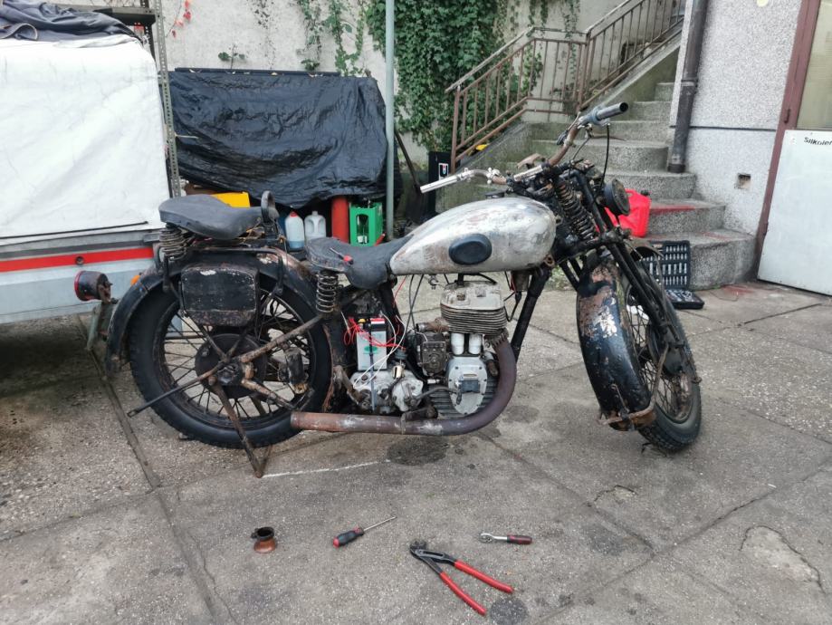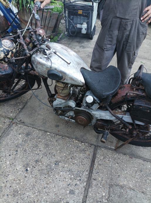 Nerestaurirani motocikl sa prikolicom iz 1938,kompletan i ne vožen preko 50 godina,motor pali i vozi.molim samo ozbiljne ponude.